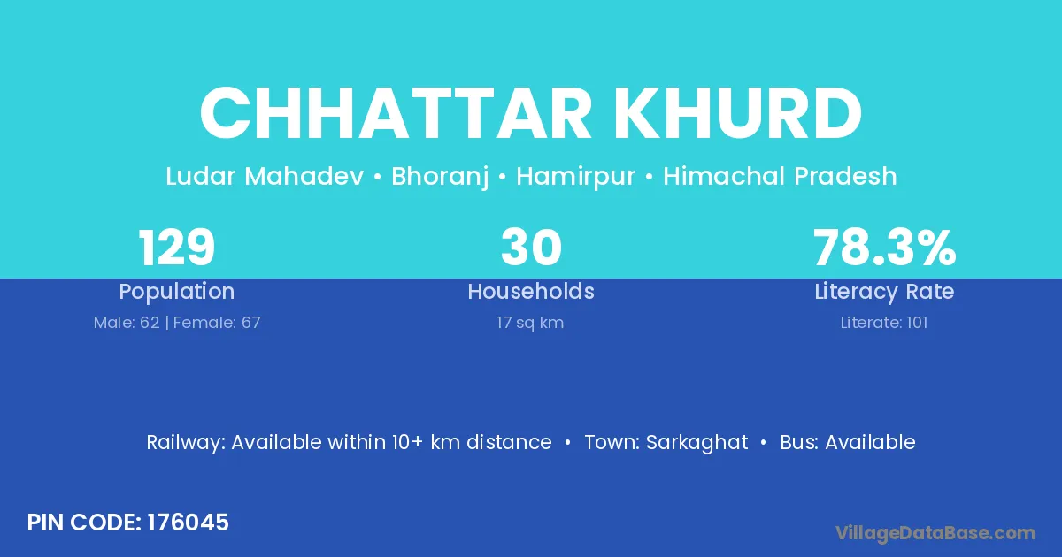 Chhattar Khurd village has a total population of 129 people, of which 62 are males and 67 are females.