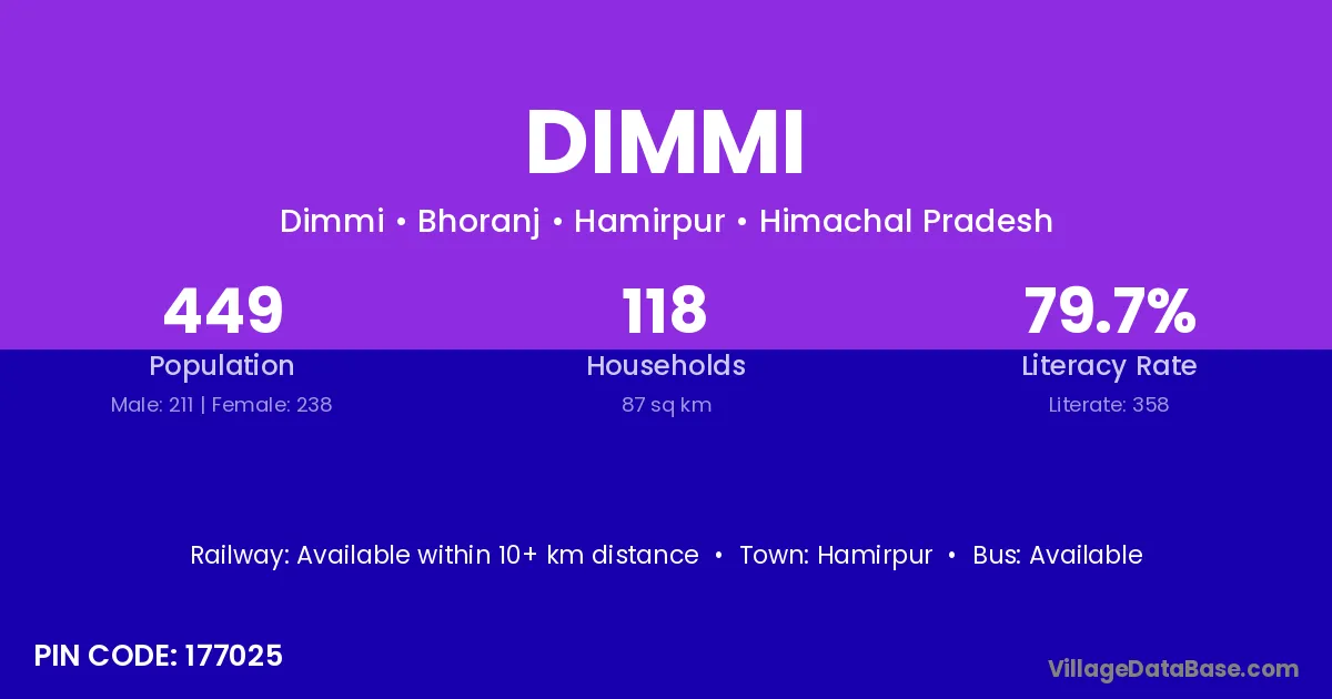 According to Census 2011 information, the village code of Dimmi village is 177025.