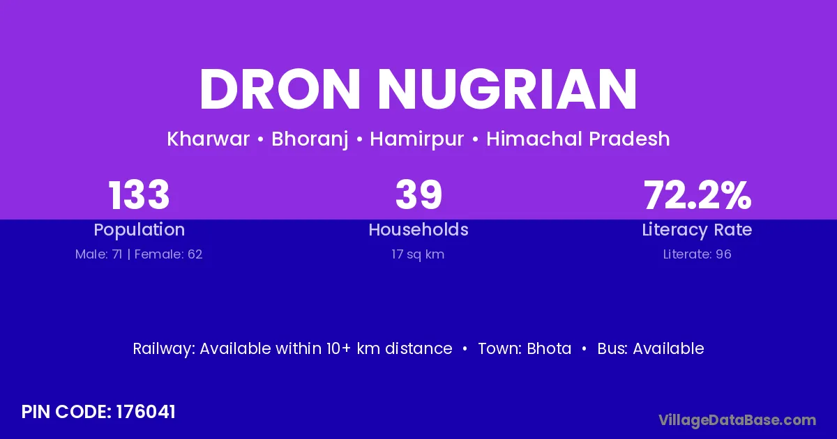 Bhota is the nearest town to Dron Nugrian village for major economic activities