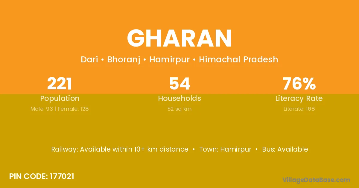 Hamirpur is the nearest town to Gharan village for major economic activities