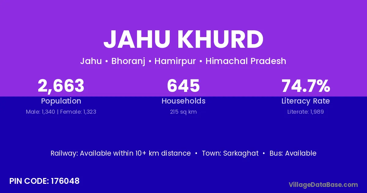 Jahu Khurd village has a total population of 2,663 people, of which 1,340 are males and 1,323 are females.