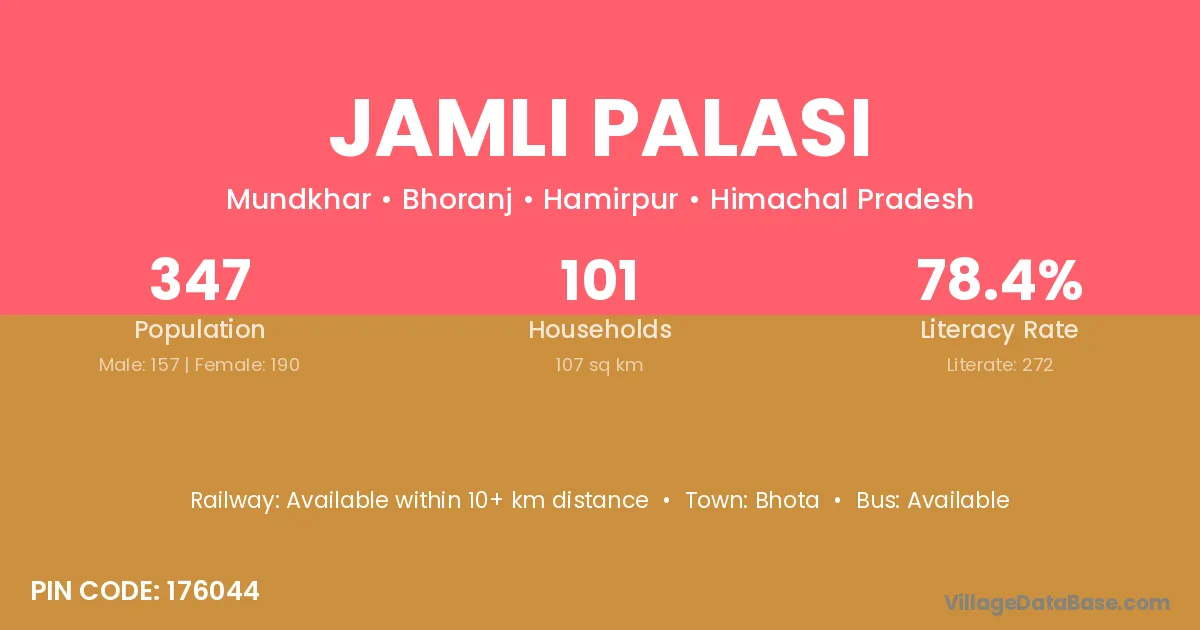 Jamli Palasi village has a total population of 347 people, of which 157 are males and 190 are females.