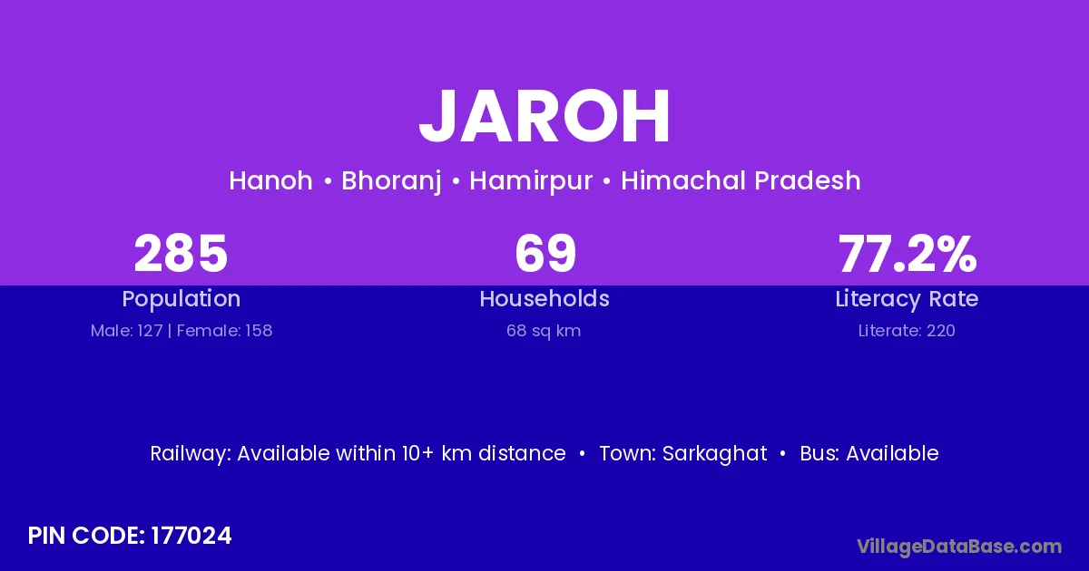 According to Census 2011 information, the village code of Jaroh village is 177024.