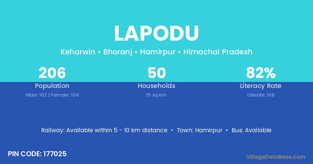 Hamirpur is the nearest town to Lapodu village for major economic activities