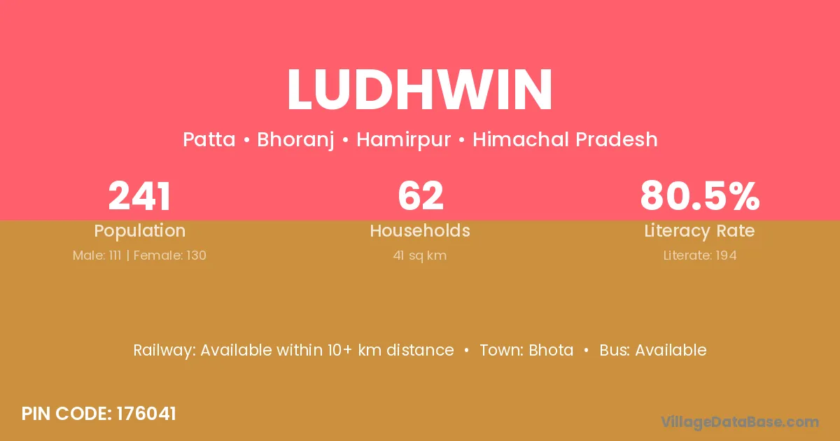 Ludhwin village has a total population of 241 people, of which 111 are males and 130 are females.