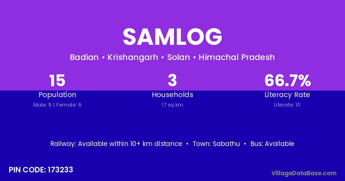 According to Census 2011 information, the village code of Samlog village is 176045.