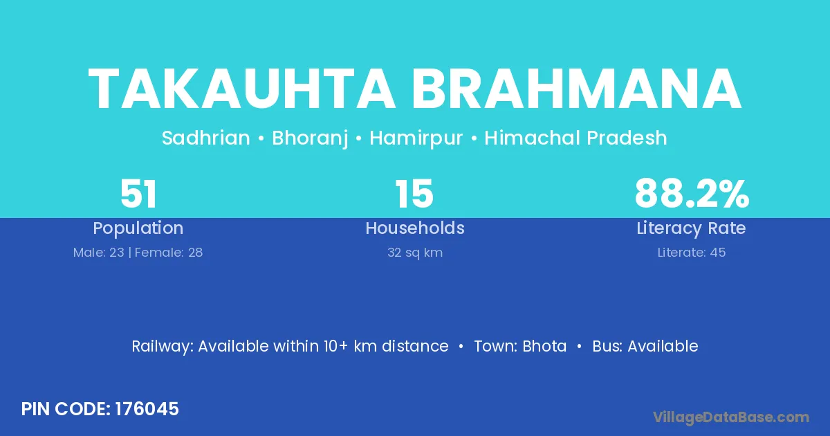 Takauhta Brahmana village has a total population of 51 people, of which 23 are males and 28 are females.