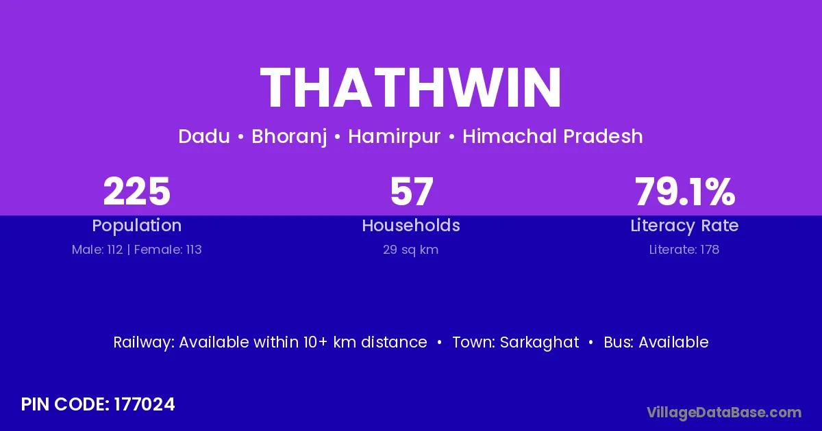 Sarkaghat is the nearest town to Thathwin village for major economic activities
