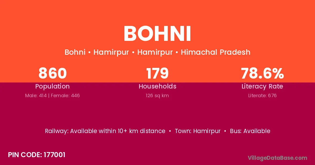 According to Census 2011 information, the village code of Bohni village is 176049.