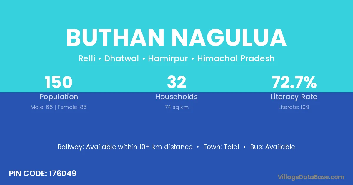 Buthan Nagulua village has a total population of 150 people, of which 65 are males and 85 are females.