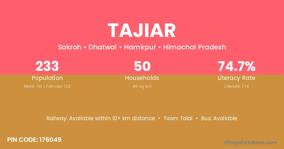 Tajiar village has a total population of 233 people, of which 110 are males and 123 are females.
