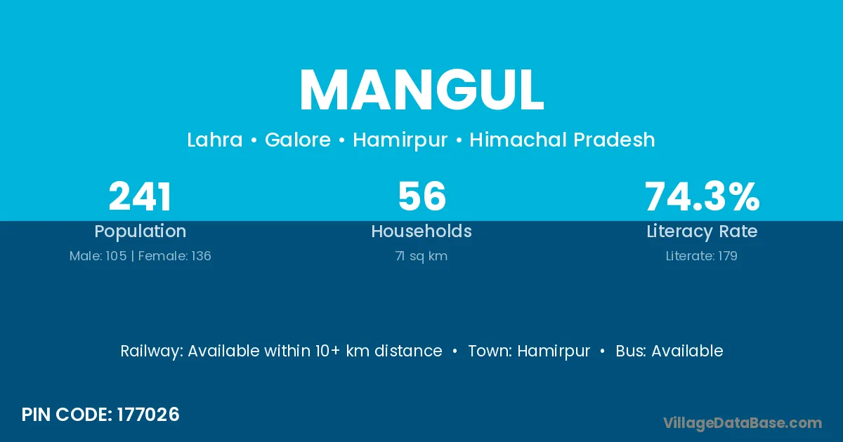 Hamirpur is the nearest town to Mangul village for major economic activities
