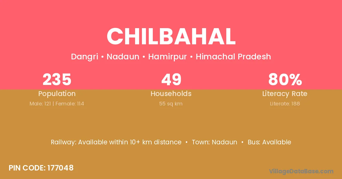 Chilbahal village has a total population of 235 people, of which 121 are males and 114 are females.