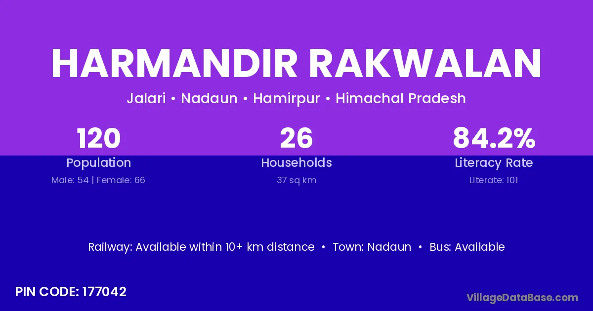 According to Census 2011 information, the village code of Harmandir Rakwalan village is 177042.