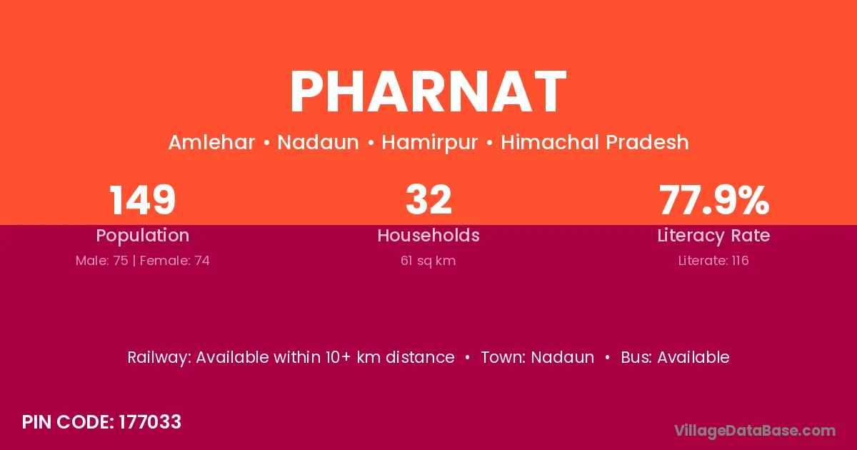 Pharnat village has a total population of 149 people, of which 75 are males and 74 are females.
