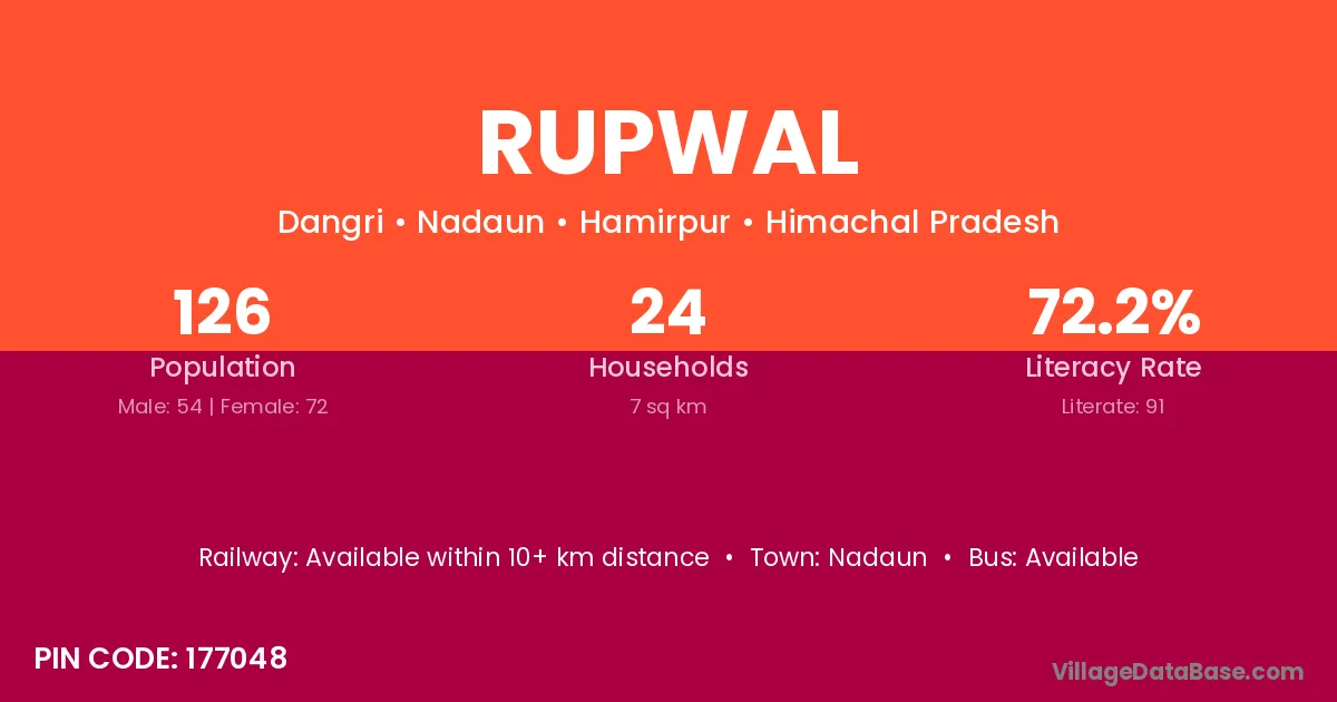 According to Census 2011 information, the village code of Rupwal village is 177048.