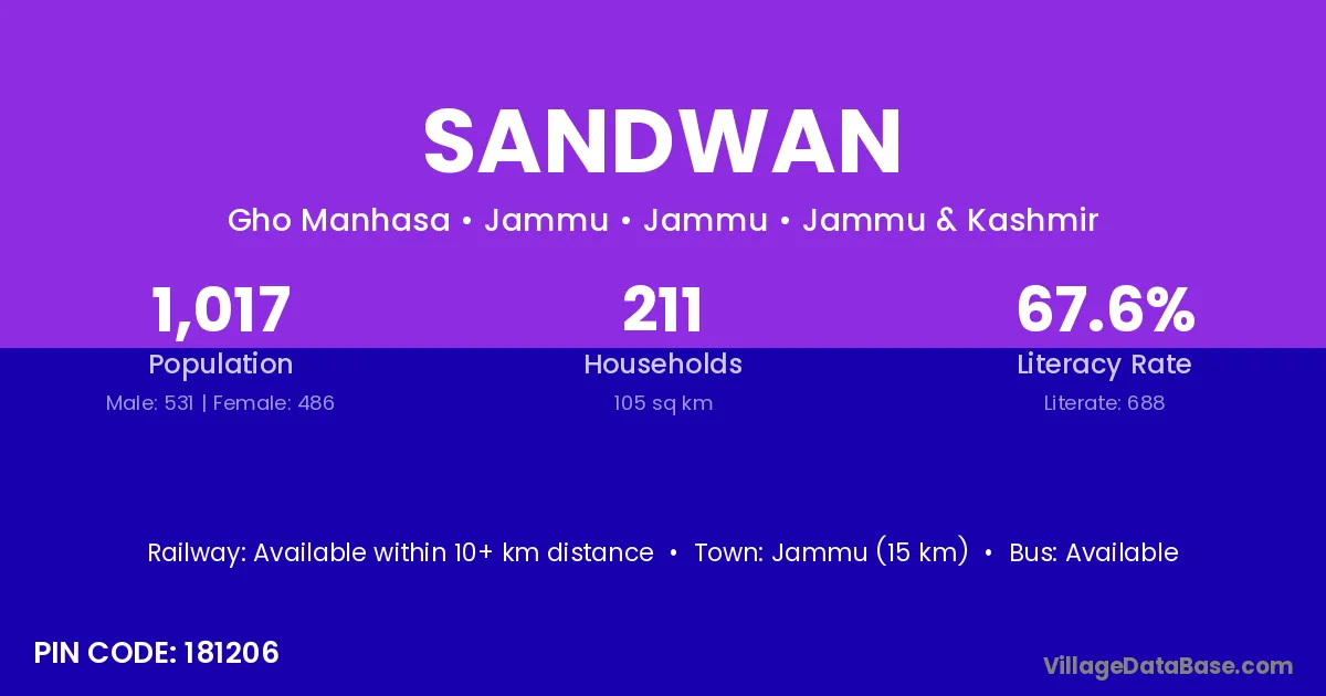 The literacy rate of Sandwan village is 73.93%. Male literacy stands at 76.07% and female literacy at 71.78%.