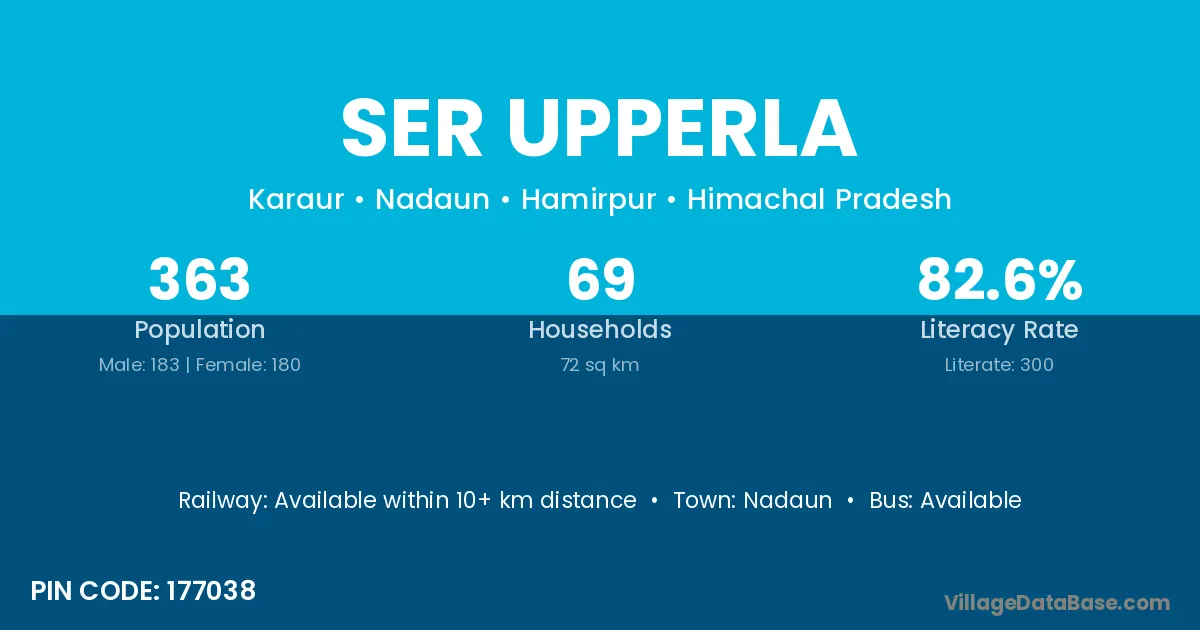 Ser Upperla village has a total population of 363 people, of which 183 are males and 180 are females.