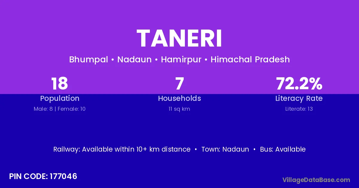 According to Census 2011 information, the village code of Taneri village is 177046.