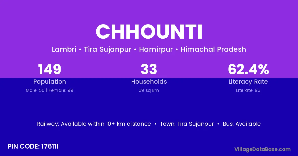 Tira Sujanpur is the nearest town to Chhounti village for major economic activities