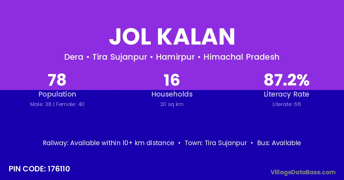 Tira Sujanpur is the nearest town to Jol Kalan village for major economic activities