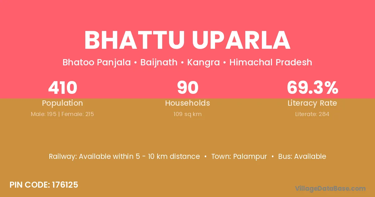 Palampur is the nearest town to Bhattu Uparla village for major economic activities