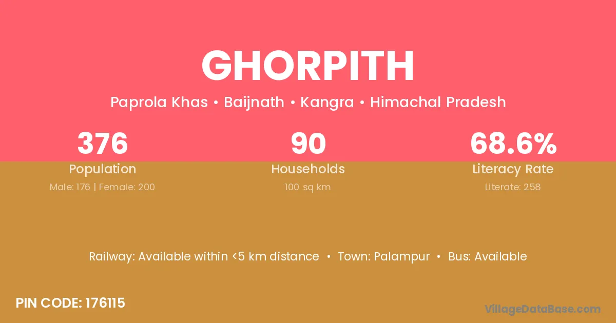 Palampur is the nearest town to Ghorpith village for major economic activities