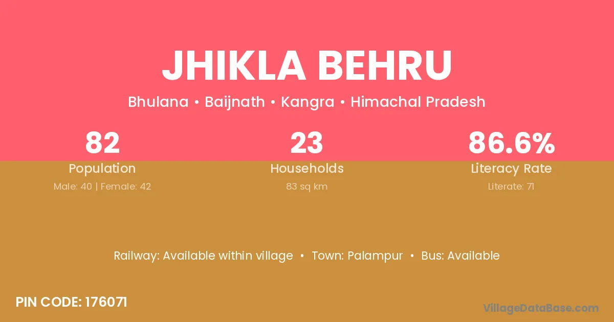 Palampur is the nearest town to Jhikla Behru village for major economic activities