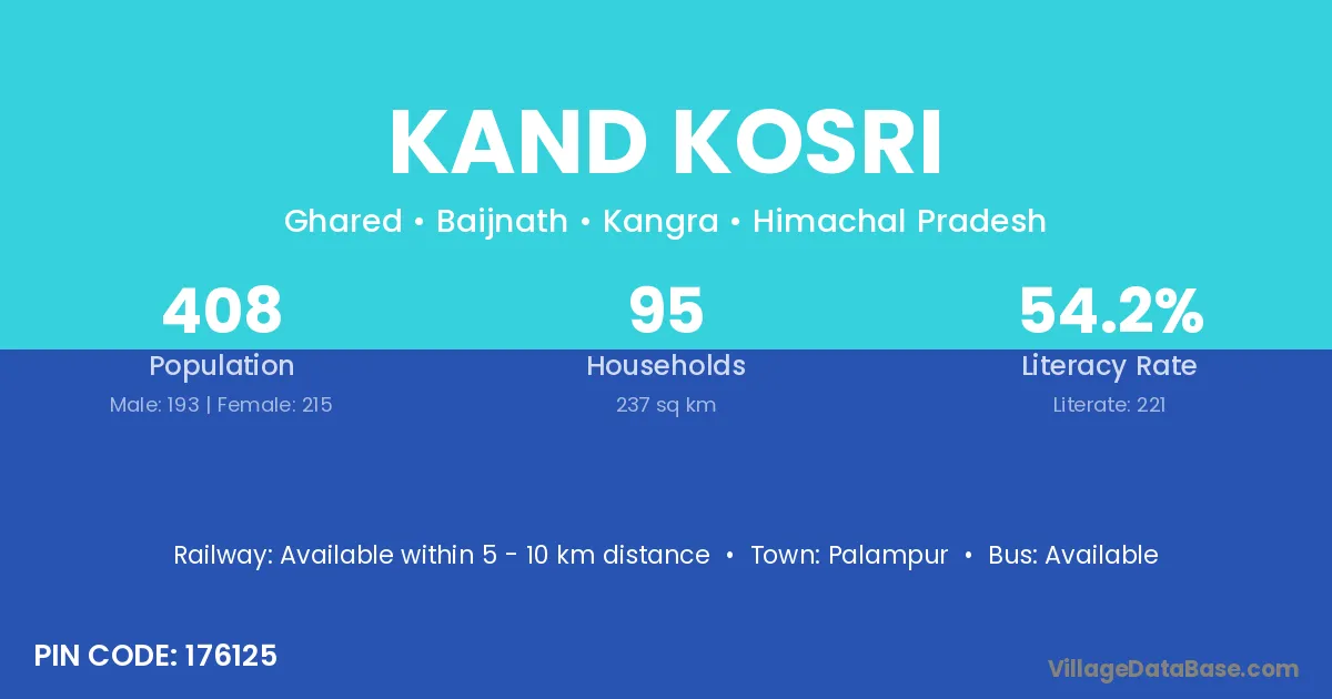 Palampur is the nearest town to Kand Kosri village for major economic activities