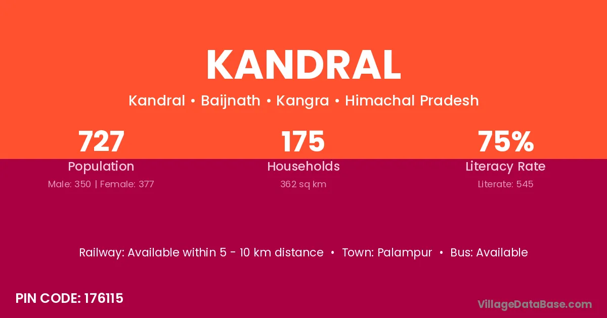 According to Census 2011 information, the village code of Kandral village is 176115.