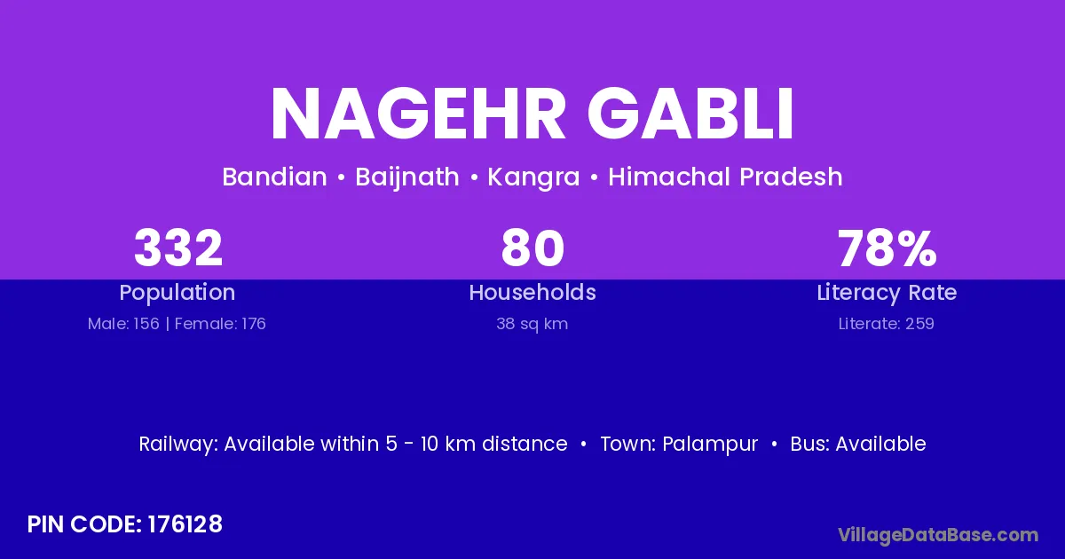 Palampur is the nearest town to Nagehr Gabli village for major economic activities