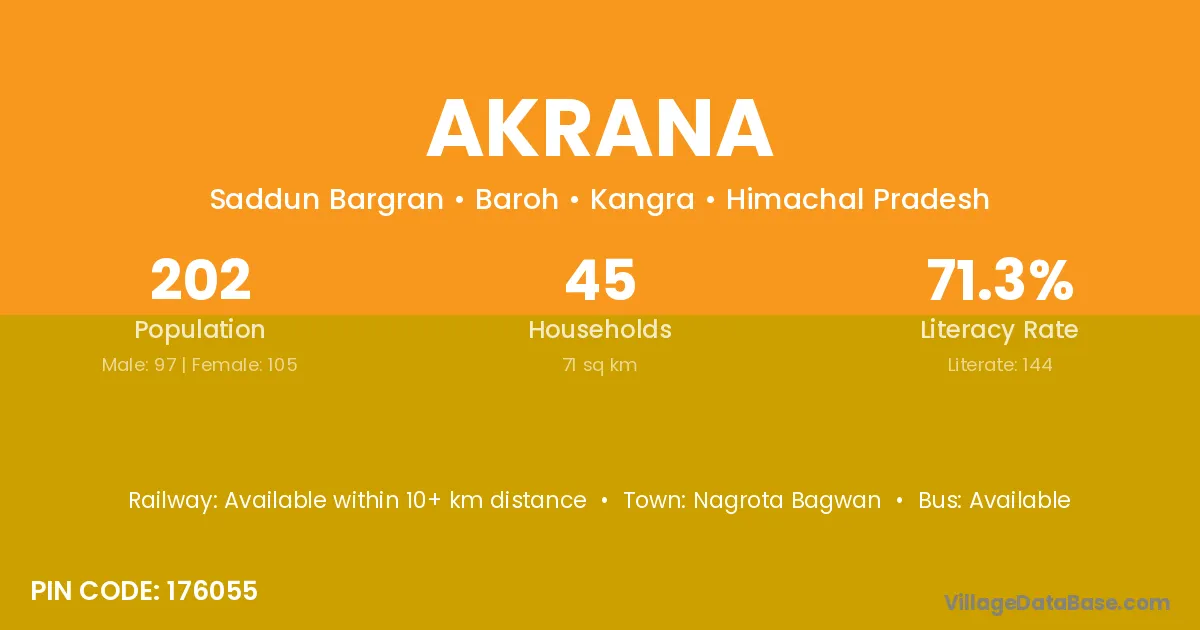Nagrota Bagwan is the nearest town to Akrana village for major economic activities