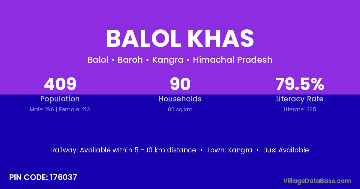 According to Census 2011 information, the village code of Balol Khas village is 176037.