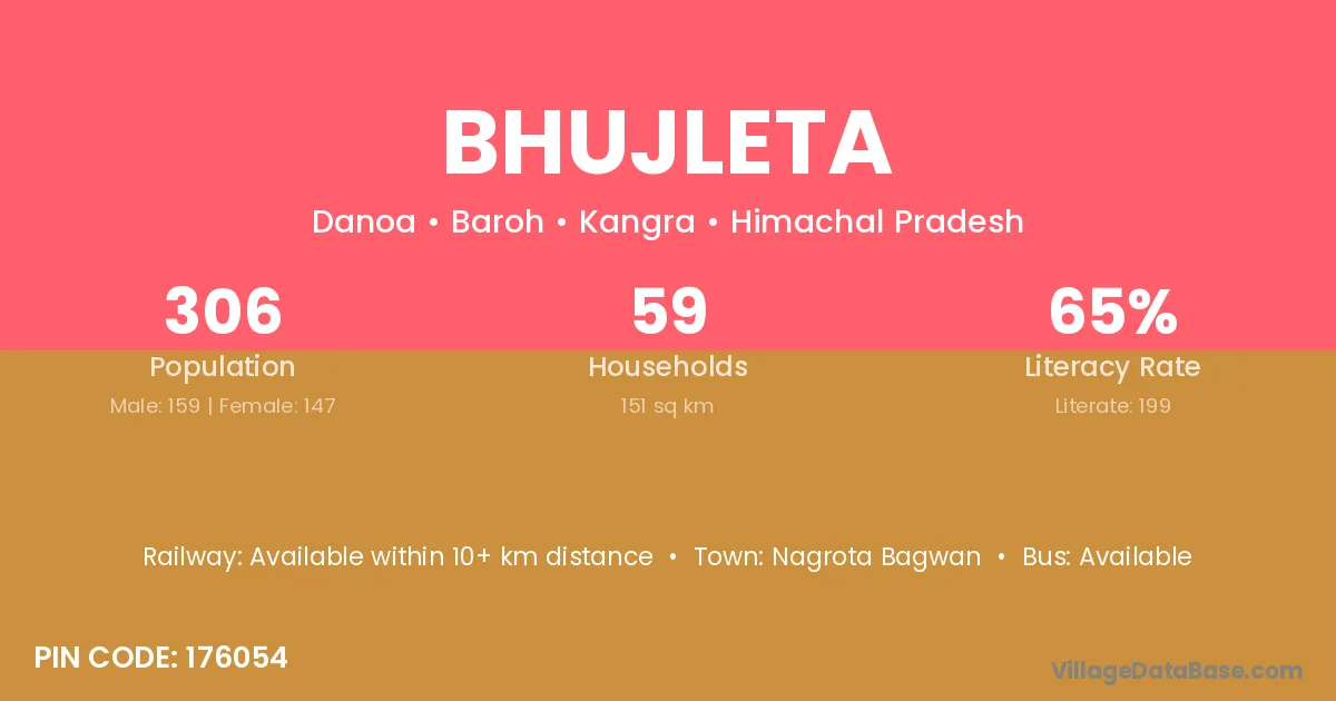 Bhujleta village has a total population of 306 people, of which 159 are males and 147 are females.