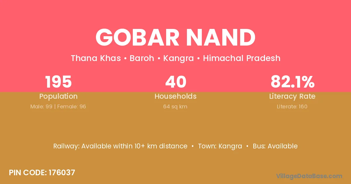 Gobar Nand village is located in the Baroh Tehsil of the Kangra district in Himachal Pradesh .