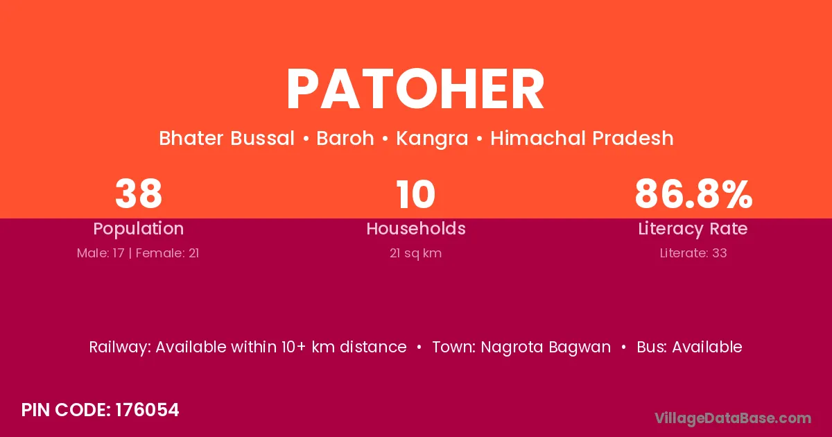Nagrota Bagwan is the nearest town to Patoher village for major economic activities