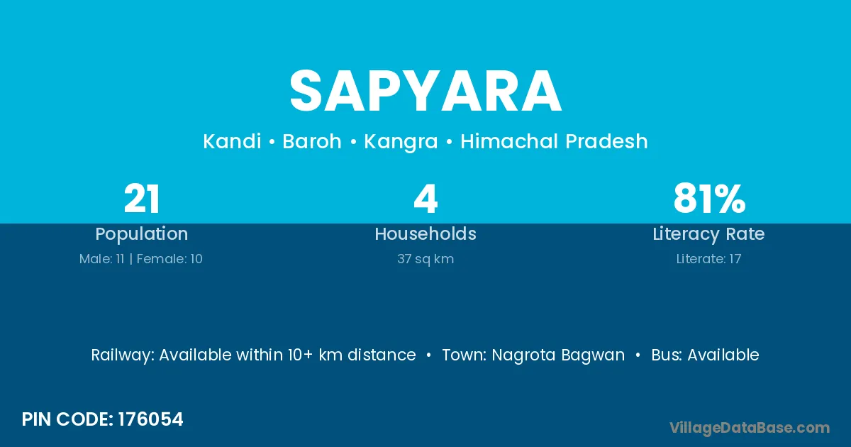 Nagrota Bagwan is the nearest town to Sapyara village for major economic activities