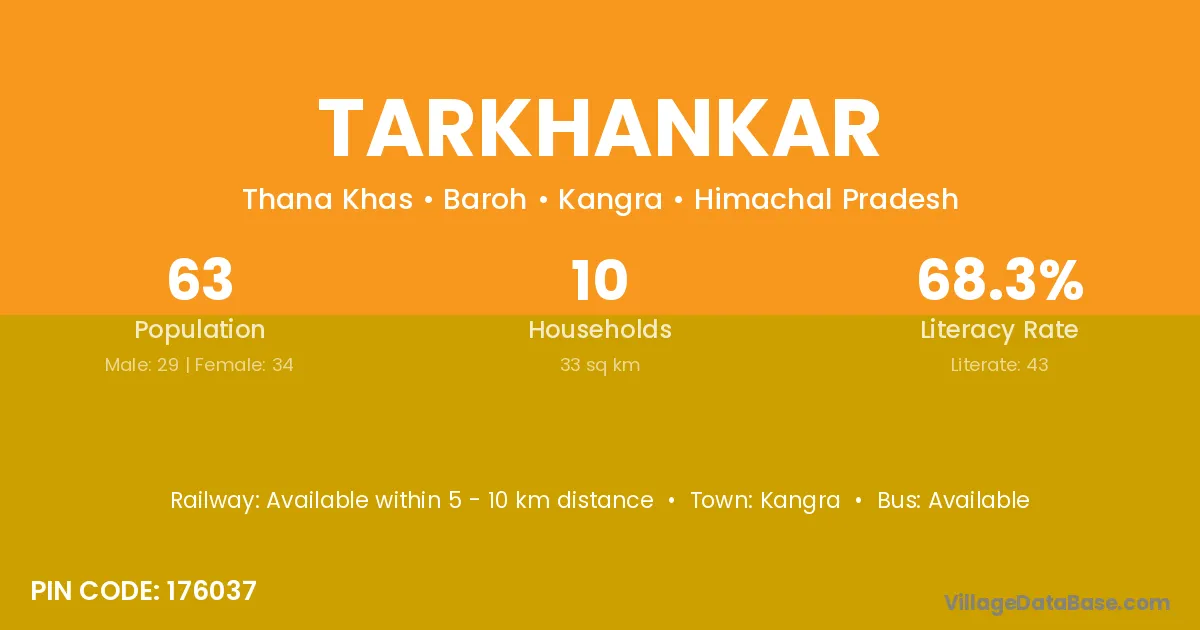 Kangra is the nearest town to Tarkhankar village for major economic activities