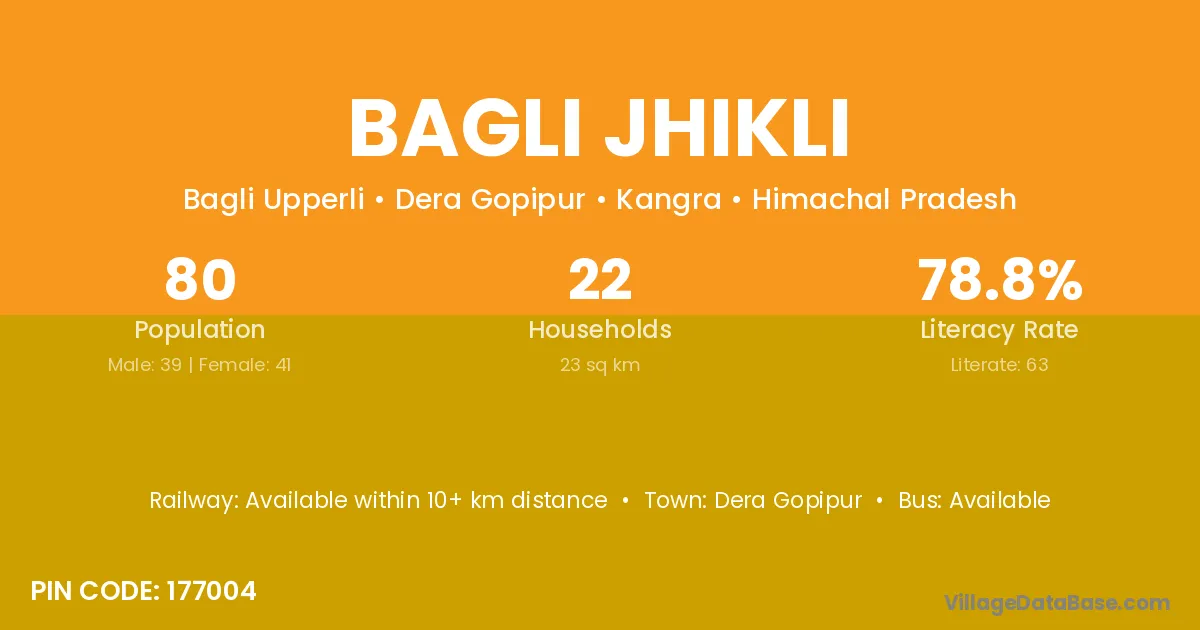According to Census 2011 information, the village code of Bagli Jhikli village is 177004.