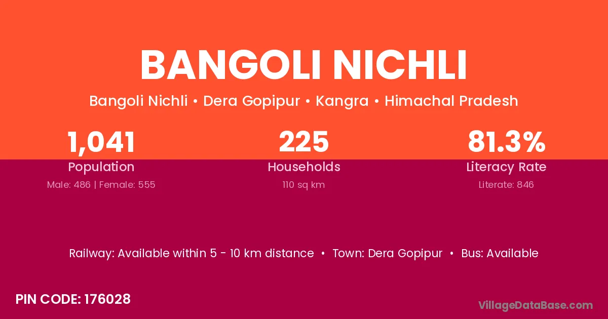 Bangoli Nichli village is located in the Dera Gopipur Tehsil of the Kangra district in Himachal Pradesh .