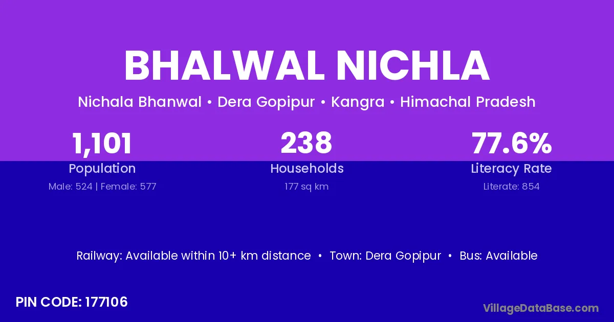 According to Census 2011 information, the village code of Bhalwal Nichla village is 177106.