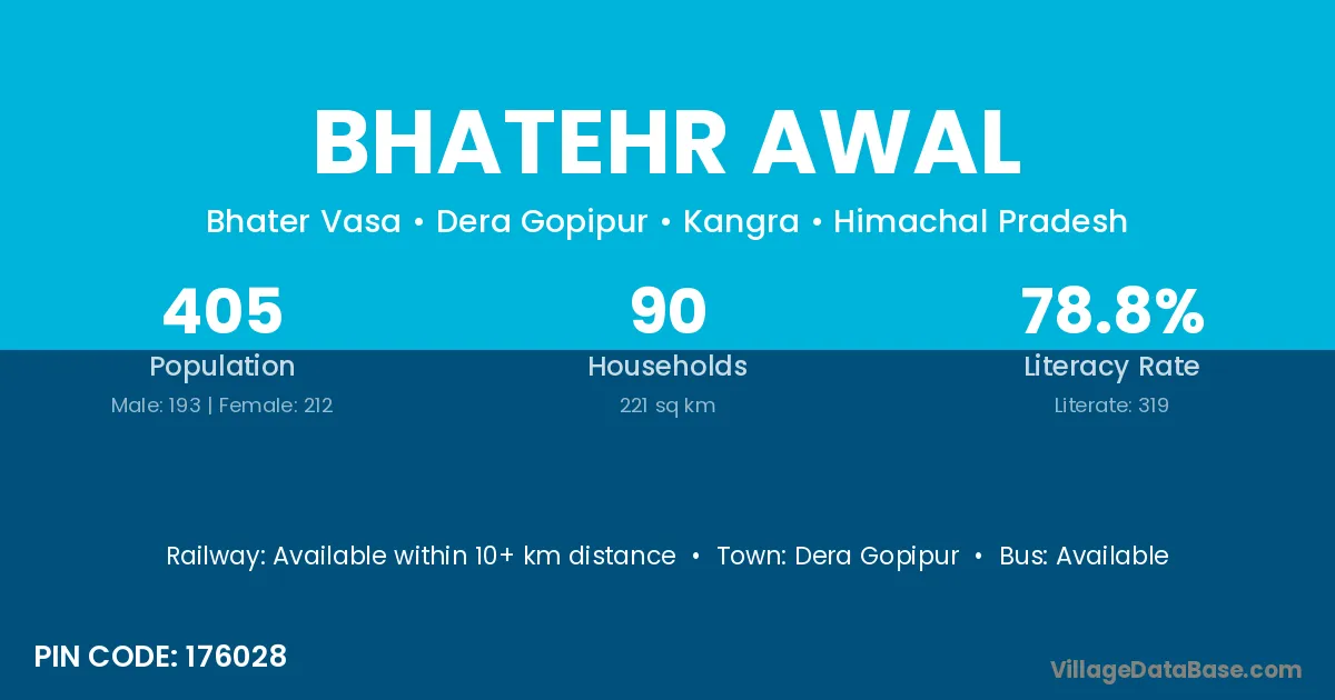 Bhatehr Awal village has a total population of 405 people, of which 193 are males and 212 are females.
