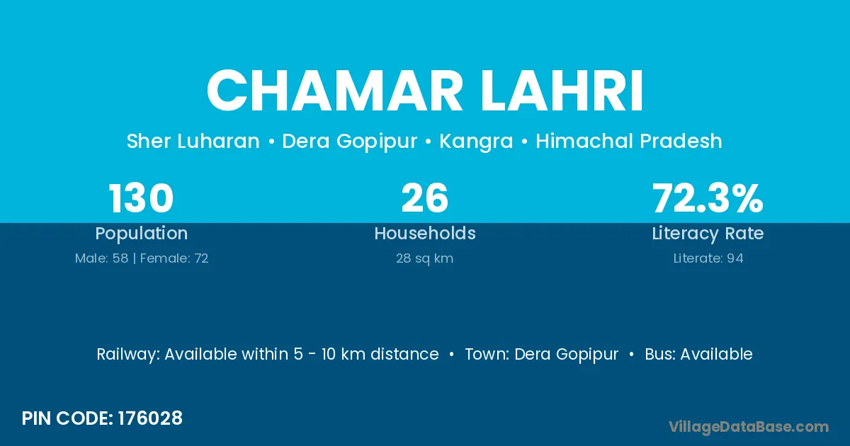 According to Census 2011 information, the village code of Chamar Lahri village is 176028.