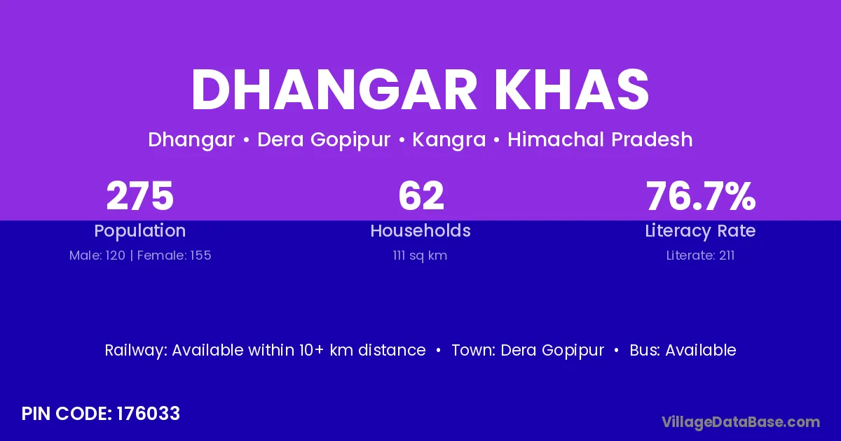 Dhangar Khas village has a total population of 275 people, of which 120 are males and 155 are females.