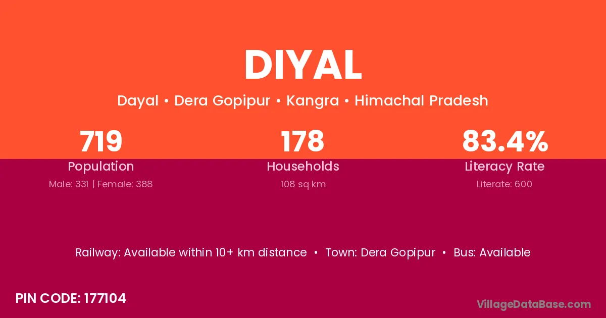 According to Census 2011 information, the village code of Diyal village is 177104.