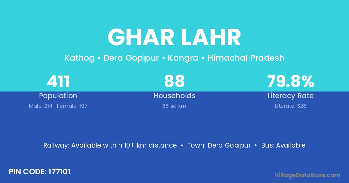 According to Census 2011 information, the village code of Ghar Lahr village is 177101.
