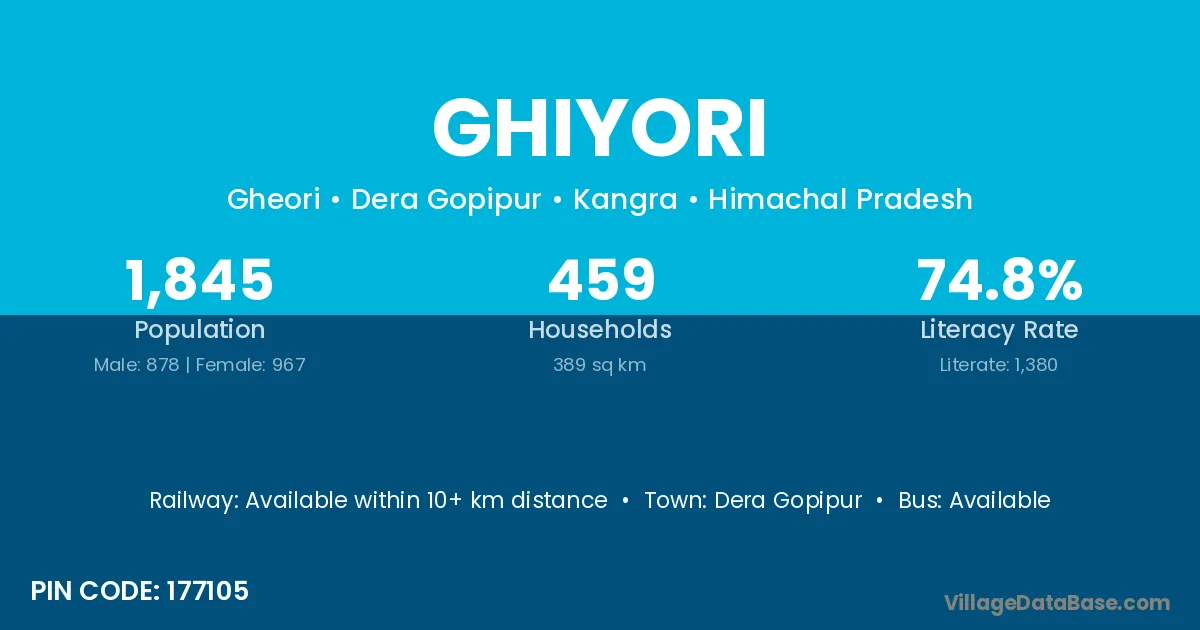 Ghiyori village has a total population of 1,845 people, of which 878 are males and 967 are females.