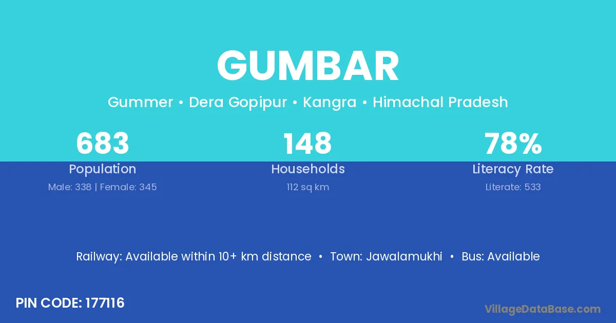 Jawalamukhi is the nearest town to Gumbar village for major economic activities