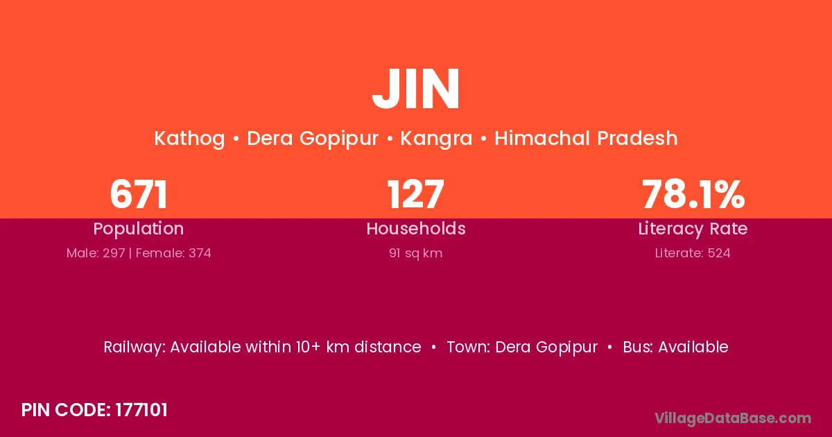 Jin village is located in the Dera Gopipur Tehsil of the Kangra district in Himachal Pradesh .