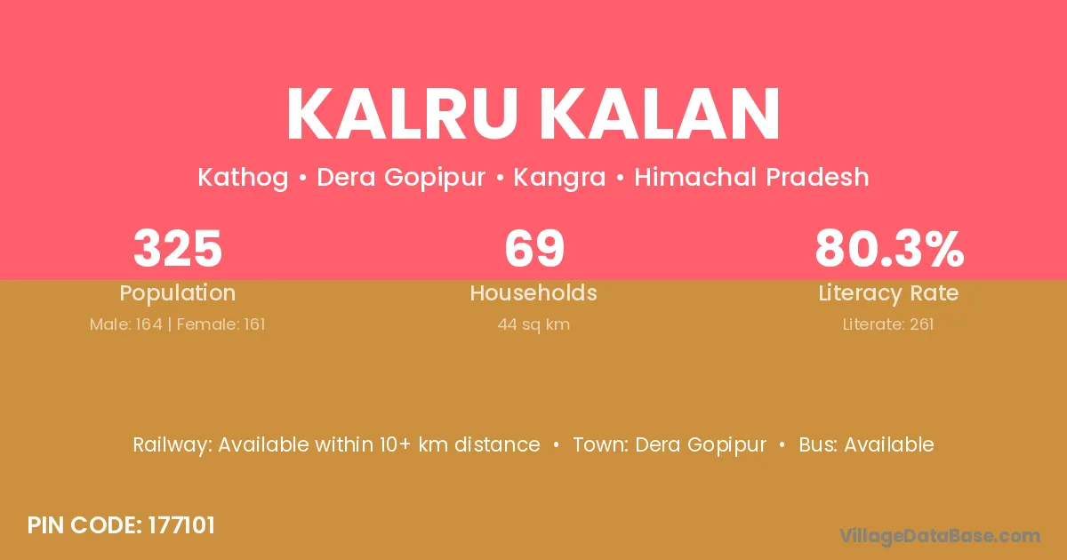 Kalru Kalan village has a total population of 325 people, of which 164 are males and 161 are females.